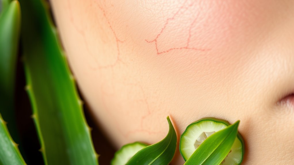 Struggling with broken capillaries? Start by applying Aloe Vera gel twice daily—its anti-inflammatory compounds soothe and repair damaged vessels. Next, dab on alcohol-free Witch Hazel to tighten and reduce redness with its astringent properties. Finally, boost Vitamin C intake through foods and serums to strengthen capillaries and promote healing. You’ll see improvements with consistent use, and practical tips await to maximize your results.