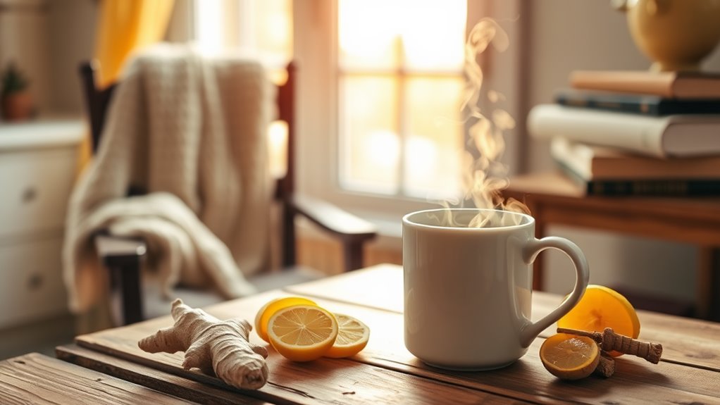 Are cold symptoms slowing you down? You can knock them out fast with a simple home remedy. Start by boiling water and steeping ginger for 10 minutes. Add lemon juice and honey for a soothing mix that targets your sore throat and boosts your immune response. Stay hydrated and rest up to enhance your recovery. Want to know more about the science behind these ingredients and additional tips? Keep exploring for the best results!