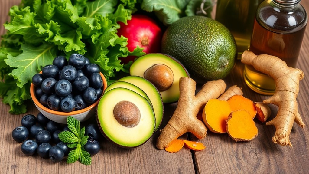 To reduce inflammation in your body, incorporate everyday foods like fatty fish, leafy greens, and berries into your diet. Fatty fish, such as salmon and mackerel, are rich in omega-3 fatty acids. Leafy greens like spinach are packed with vitamins and antioxidants. Berries offer powerful antioxidants that protect your cells. Don’t forget healthy nuts and seeds, along with olive oil and turmeric, which enhance anti-inflammatory effects. Discover even more options that can make a difference in your wellness journey.