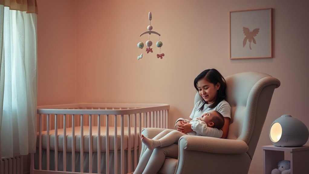 To ease your baby’s colic at night, create a calming sleep environment with dim lights and soothing white noise. Incorporate gentle massage techniques on their belly and back, paying attention to their cues for comfort. Establish a consistent nighttime routine with a warm bath, rocking, or swaddling to reinforce their circadian rhythm. These gentle tricks can help both you and your baby find comfort during those challenging moments. There’s so much more to discover on this topic.