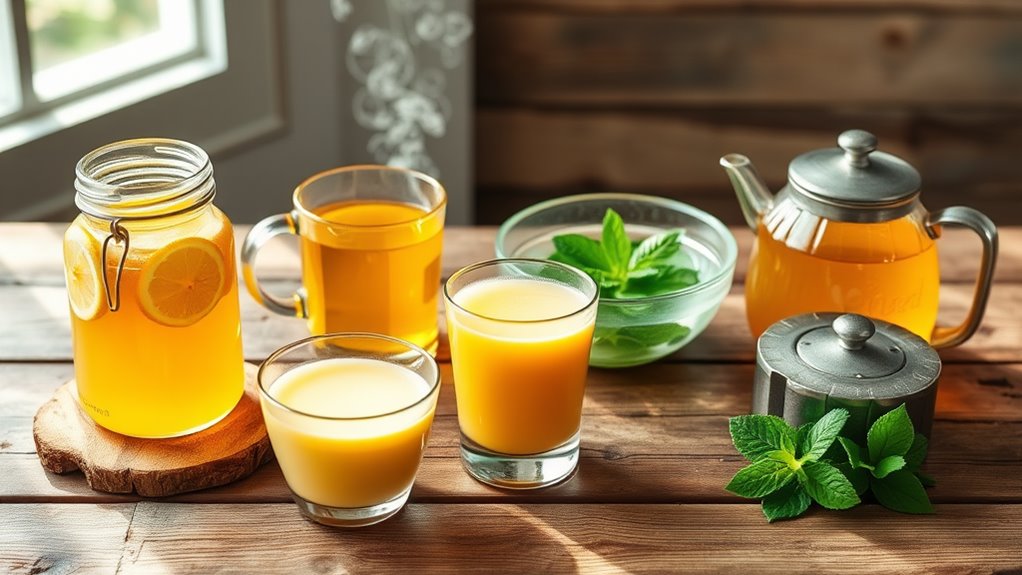 Ginger tea serves as another effective home remedy for cough relief, building on the natural options like honey mixtures. It works by fighting inflammation, which helps address common triggers such as irritants. You’ll appreciate its anti-inflammatory effects, as studies suggest ginger may reduce throat irritation and ease coughing. To prepare it, simply brew fresh ginger in hot water for soothing benefits. Additionally, ginger can enhance immune response by boosting circulation and supporting the body’s defenses against common cold symptoms.