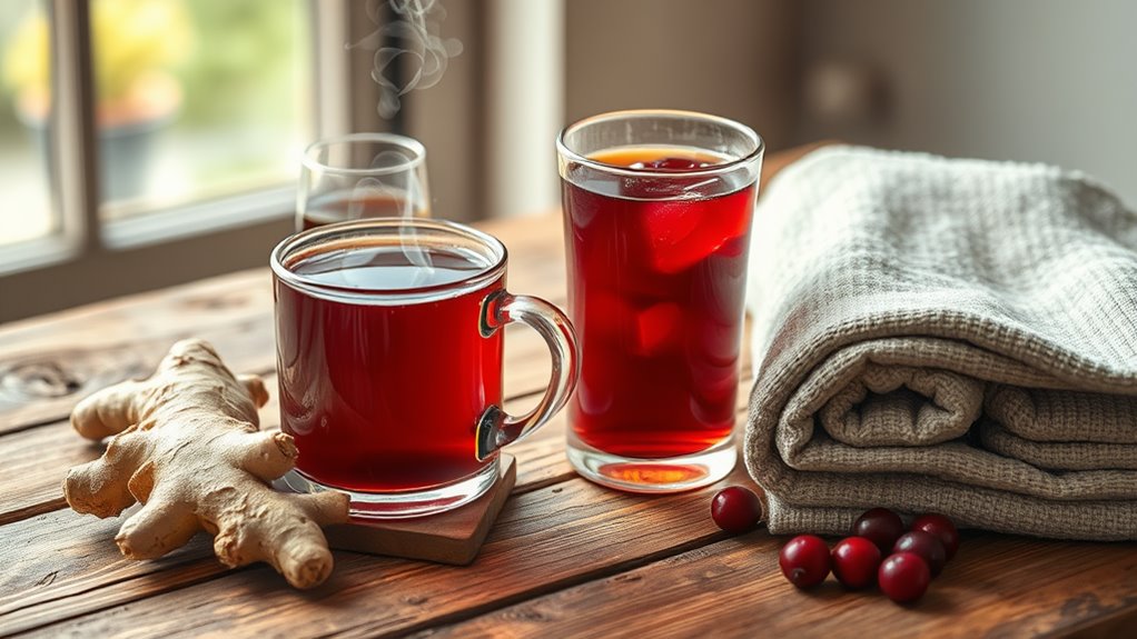 If you’re dealing with kidney pain, you’ll find that boosting your water intake to 2-3 liters daily effectively flushes toxins and supports hydration. Try anti-inflammatory herbs like ginger or nettle to reduce discomfort, while cutting sodium and adding fresh fruits and veggies aids kidney health. Gentle exercises such as walking or yoga improve circulation, and heat applications with natural oils like olive oil provide quick relief. Explore these strategies further for lasting benefits.