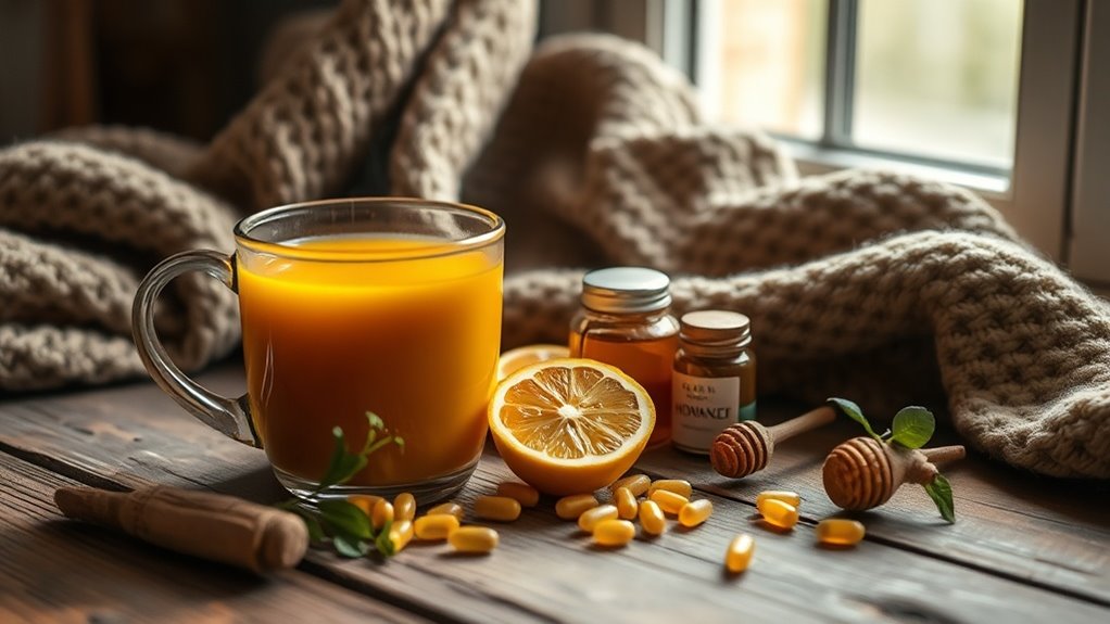 Herbal teas, especially those with ginger or chamomile, soothe your throat and reduce inflammation. Honey’s antibacterial properties help ease coughs, while steam inhalation clears nasal passages. Additionally, using herbal remedies can offer natural solutions for common ailments, enhancing your body’s ability to recover effectively.