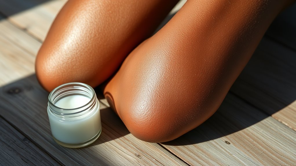 If you’re looking for a quick fix for dark elbows, lemon juice is your answer! This natural remedy works wonders with its bleaching properties and vitamin C. Just squeeze fresh lemon juice into a bowl, soak a cotton ball, and gently apply it to your elbows. Leave it on for 15 minutes before rinsing. Use it daily for a week to see noticeable results. Curious about more tips to maintain that brighter skin? There’s plenty more to explore!