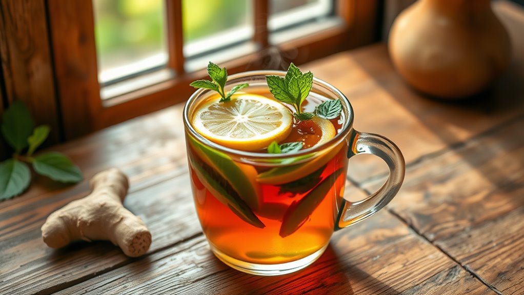 Lastly, peppermint can open your sinuses, making it easier to breathe. By combining these ingredients, you’re creating a potent elixir that not only relieves symptoms but also supports your body’s healing process.