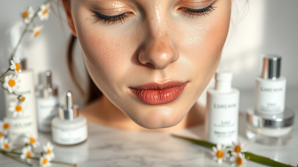 Additionally, choose moisturizers with soothing ingredients like chamomile or aloe vera to calm inflammation and provide hydration for healthier-looking skin. Incorporating antioxidant-rich foods into your diet can also support healthier capillaries and enhance the effectiveness of your skincare routine.
