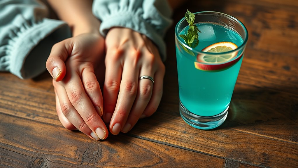 Finally, a pinch of black pepper enhances turmeric’s absorption, maximizing its benefits. By strategically selecting these ingredients, you’ll craft a drink that not only tastes great but also provides significant relief from swollen joints.