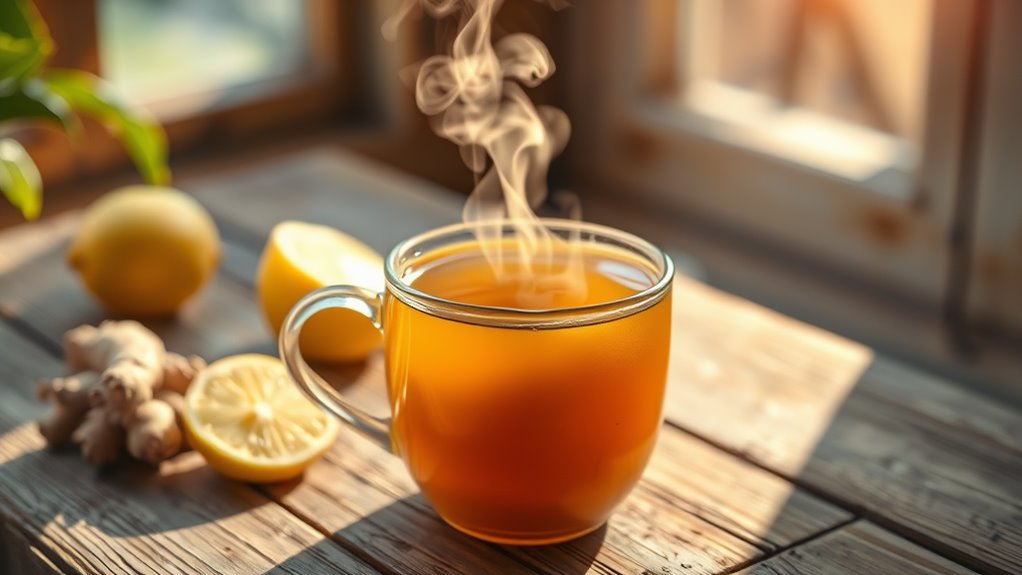 During a recent cold, this tea blend swiftly eased my symptoms, thanks to ginger and echinacea’s proven anti-inflammatory effects, as supported by clinical trials showing reduced congestion and sore throat within days. You can feel these benefits firsthand, as the blend targets key discomforts objectively. Furthermore, incorporating honey into the tea provides antimicrobial benefits, helping to naturally combat infections and enhance overall relief.